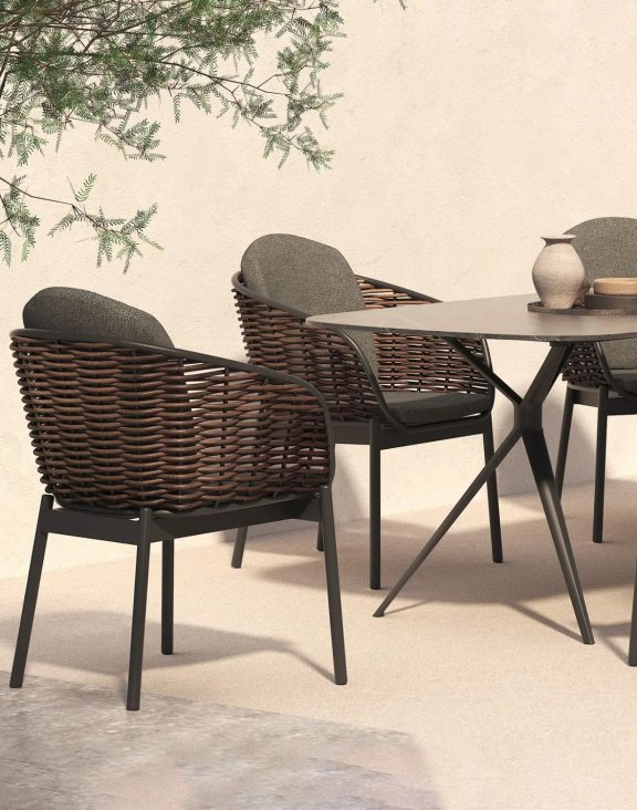 Vďaka konštrukcii zo silného 10 mm technoratanu je mimoriadne odolný a ľahko sa čistí. Celý rám je vyrobený z hliníka, práškovo lakovaného na antracitovú farbu, čo zaisťuje stabilitu a odolnosť voči poveternostným vplyvom.