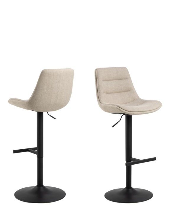 Stolička je čalúnená béžovou látkou Basel s výraznou štruktúrou, ktorú dopĺňa matná čierna noha a opierka na nohy.