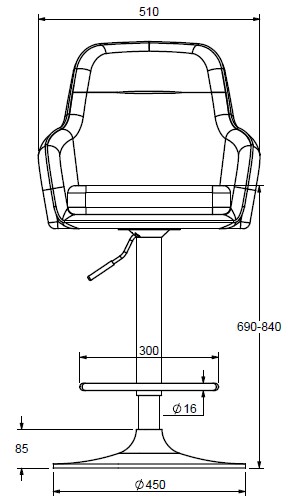 Rozmery: šírka: 51 cm, výška: 95,5–110 cm (nastaviteľná), hĺbka: 53 cm, hĺbka sedadla: 40,5 cm, šírka sedadla: 38 cm, výška sedadla k hornej časti podrúčky: 9 cm, celkovo nastaviteľná výška sedadla: 15 cm.