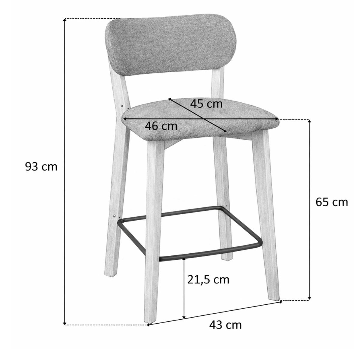 Rozmery: výška 93 cm, šírka 46 cm, hĺbka 45 cm, výška sedadla od zeme 65 cm, výška opierky na nohy od zeme 21,5 cm.