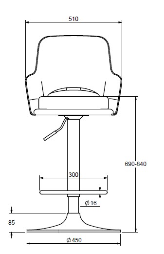 Rozmery: šírka 51 cm, výška 95,5–110,5 cm, hĺbka 54 cm, výška operadla 38,5 cm, hĺbka sedadla 45 cm, výška sedadla od podlahy 69 cm, šírka sedadla 38 cm, výška sedadla k hornej časti podrúčky 9 cm, celkovo nastaviteľná výška sedadla 69–84 cm.