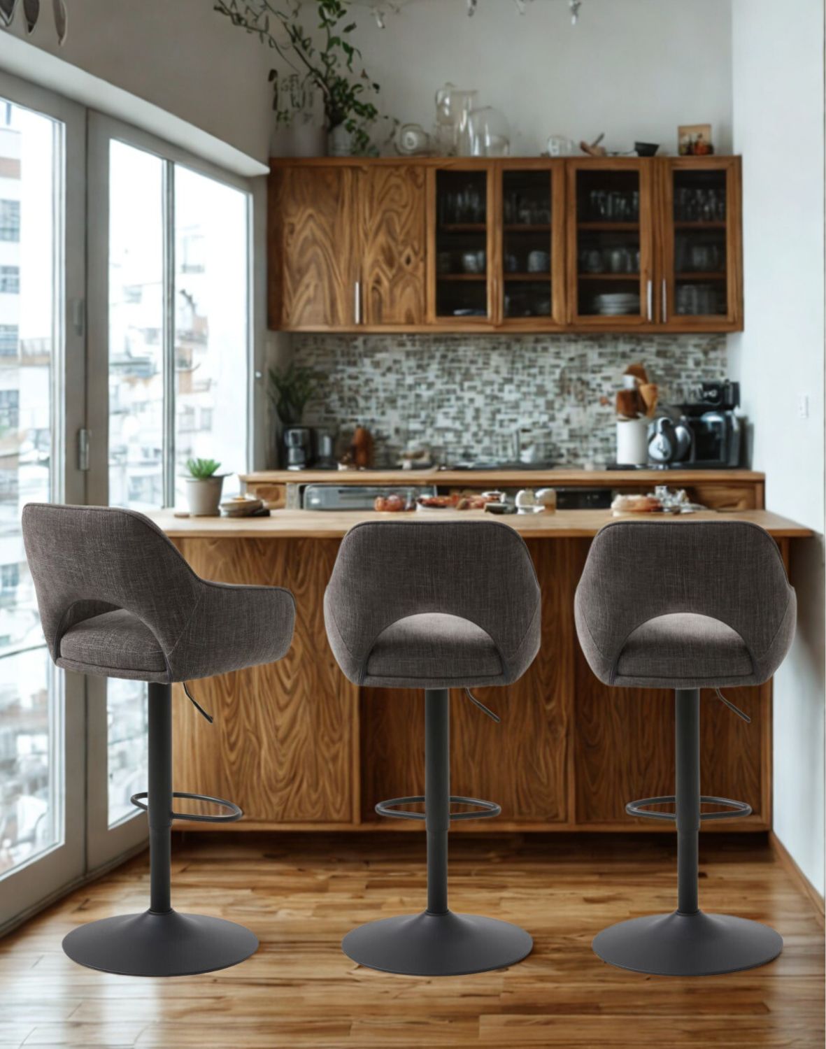 Štíhla, kovová základňa (nastaviteľná) zaisťuje stabilitu a moderný charakter, a celok sa skvele hodí do kuchyne, k ostrovčeku, do jedálne, baru či komerčných priestorov.