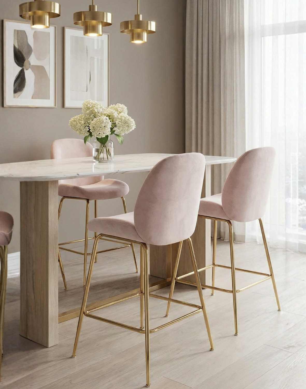 Elegantná barová stoličkla Dori Gold v béžovej farbe so zaobleným operadlom a sedadlom je dokonalým doplnkom kuchyne, jedálne s vysokým pultom alebo barovým pultom.