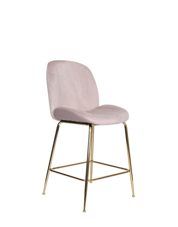 Barová stolička je čalúnená na dotyk príjemnou zamatovou látkou v béžovej farbe.
