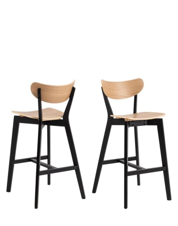 Retro štýl stoličiek Roxby sa odráža v ich jedinečnom tvare a charakteristických detailoch. Modernosť sa naopak prejavuje v použití čierneho, matného kaučukového dreva v základe. Táto farba vytvára elegantný kontrast so svetlou, dubovou dyhou.