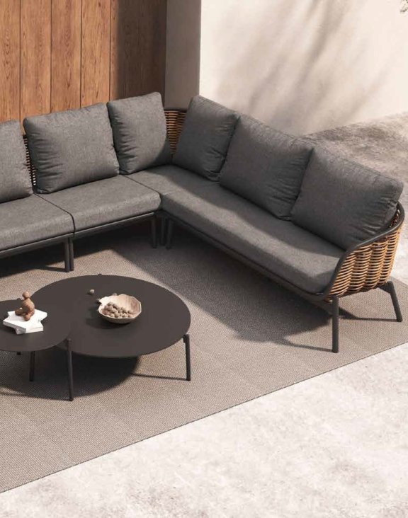 Rohová sedačka bola navrhnutá vo forme modulárnej rohovej sedačky skladajúcej sa z troch pohodlných záhradných pohoviek.