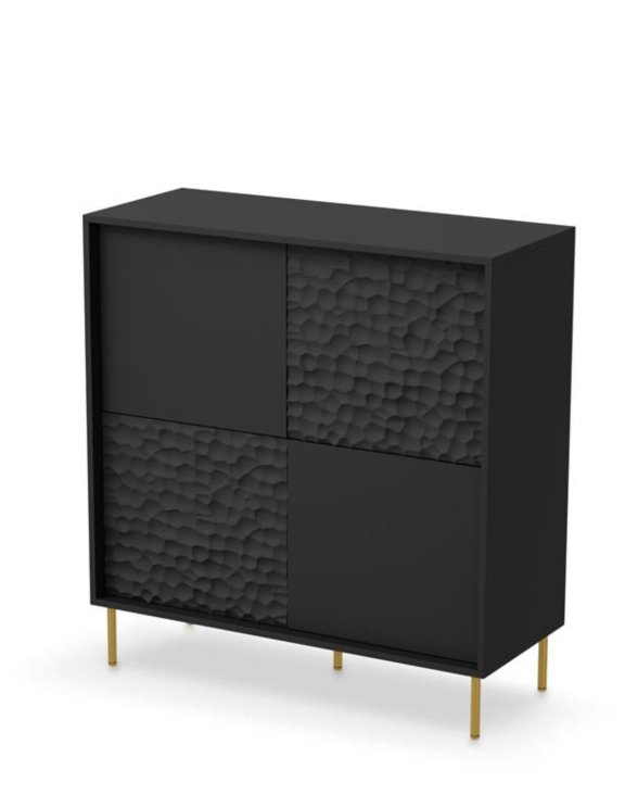 Čelo komody má pútavý 3D vzor, ktorý dávajú modelu výrazný charakter. Vďaka tomuto detailu má komoda jedinečný vzhľad, ktorý jednoznačne upúta pozornosť a dodá interiéru originalitu.