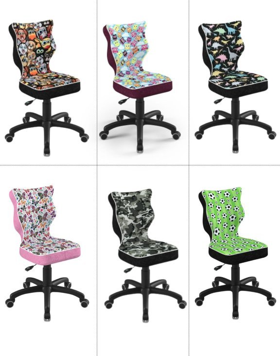 Stolička Petit je ideálna k písaciemu stolu na písanie úloh, kreslenie alebo prácu na počítači — vytvára ergonomické podmienky podporujúce sústredenie a zdravé sedenie.