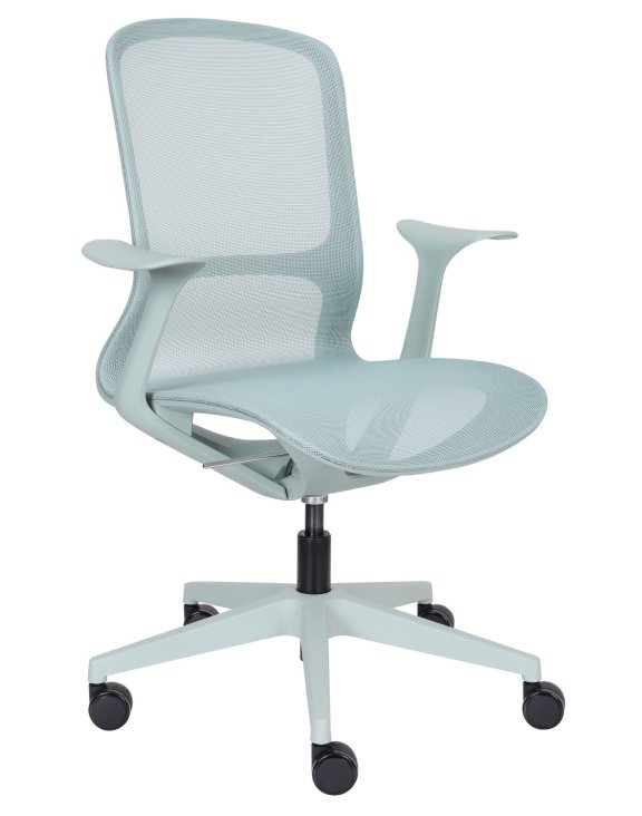 Sedák a vysoké operadlo sú vyrobené z odolnej a pružnej sieťoviny v módnom pastelovo zelenom odtieni.