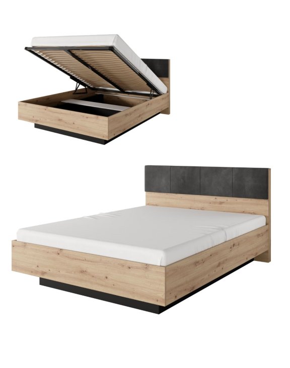 Drevená posteľ s čalúneným čelom a úložným priestorom Tally C 160
