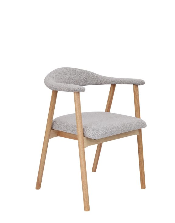 Stolička Notte Light značky Avida Design je elegantná čalúnená stolička s podrúčkami vyrobená z masívneho kaučukového dreva v prírodnej farbe.