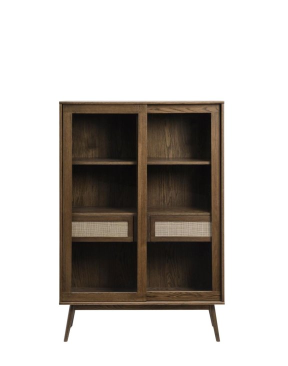 Vyrobená z vysokokvalitných materiálov, spája prírodný dub, ratan a sklo, čím vytvára štýlový a praktický prvok vybavenia.