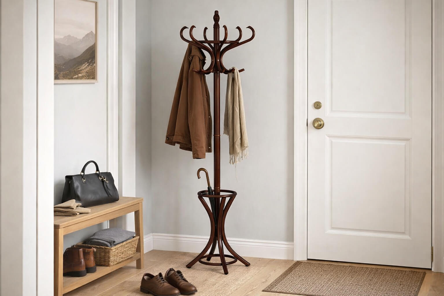 Vešiak je celý vyrobený z ohýbaného dreva v odtieni wenge.