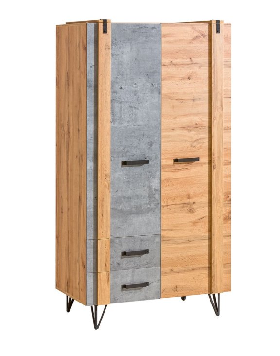 Šatníková skriňa Lofter LO1 so šírkou 90 cm predstavuje dokonalé spojenie moderného dizajnu s industriálnym charakterom, ktoré vnáša do interiéru jedinečnú atmosféru loftovej elegancie.