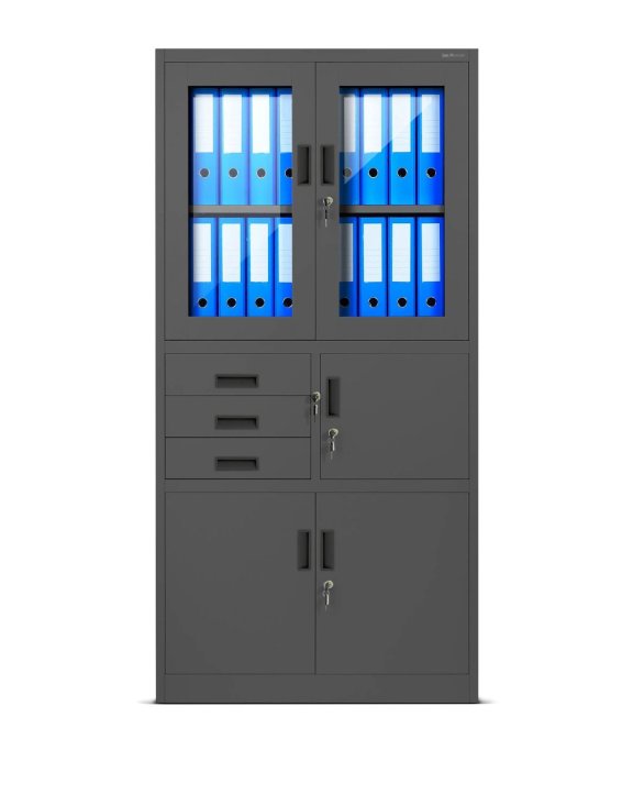 Kovová skriňa Filip s trezorom v antracitovej farbe, je nábytok spĺňajúci najrôznejšie potreby rôznych používateľov.
