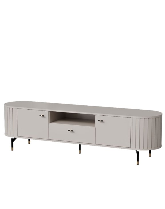 TV stolík so zaoblenými tvarmi a ryhovanými prvkami ZANTE ZA5 spája eleganciu a moderný vzhľad.