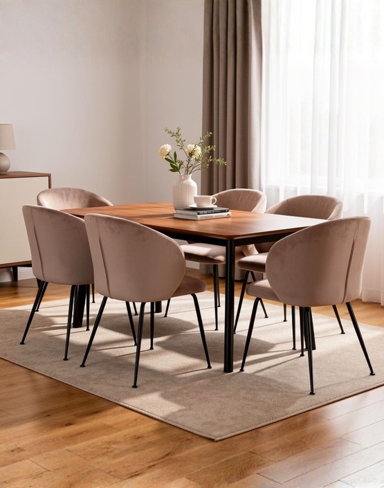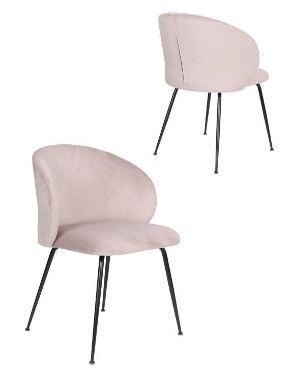 Stolička je čalúnená béžovou zamatovou látkou príjemnou na dotyk.