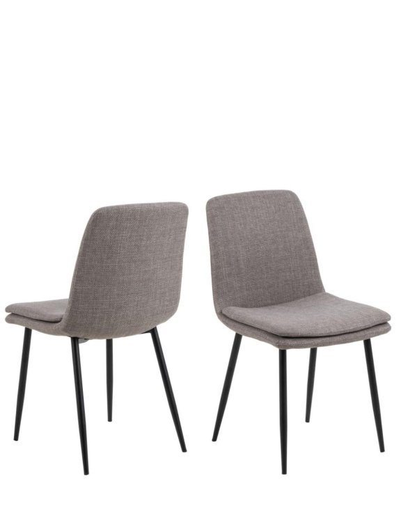 Jedálenská stolička Becca značky Actona je elegantná jedálenská stolička čalúnená sivou látkou s čiernymi kovovými nohami s práškovým nástrekom.