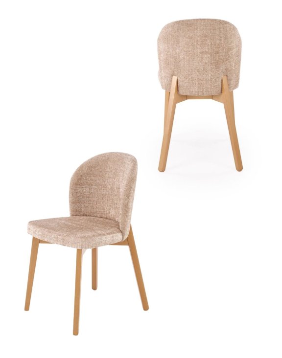 Jemná štruktúra poťahu podčiarkuje útulný charakter stoličky, zatiaľ čo pevná konštrukcia z bukového dreva v prírodnej farbe dodáva nábytku stabilitu a nadčasový vzhľad.