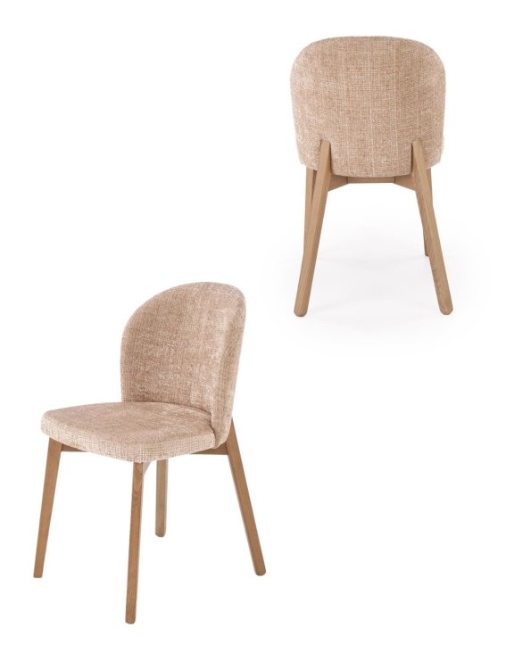 Jemná štruktúra poťahu podčiarkuje útulný charakter stoličky, zatiaľ čo pevná konštrukcia z bukového dreva v odtieni orecha dodáva nábytku stabilitu a nadčasový vzhľad.