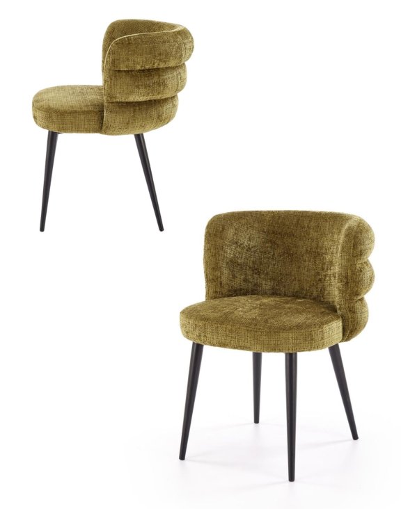 Olivová látka Cremona s jemnou štruktúrou dodáva stoličke elegantný a nadčasový vzhľad, vďaka čomu ju jednoducho zladíte s rôznymi štýlmi interiéru – od moderných cez škandinávske až po klasické.