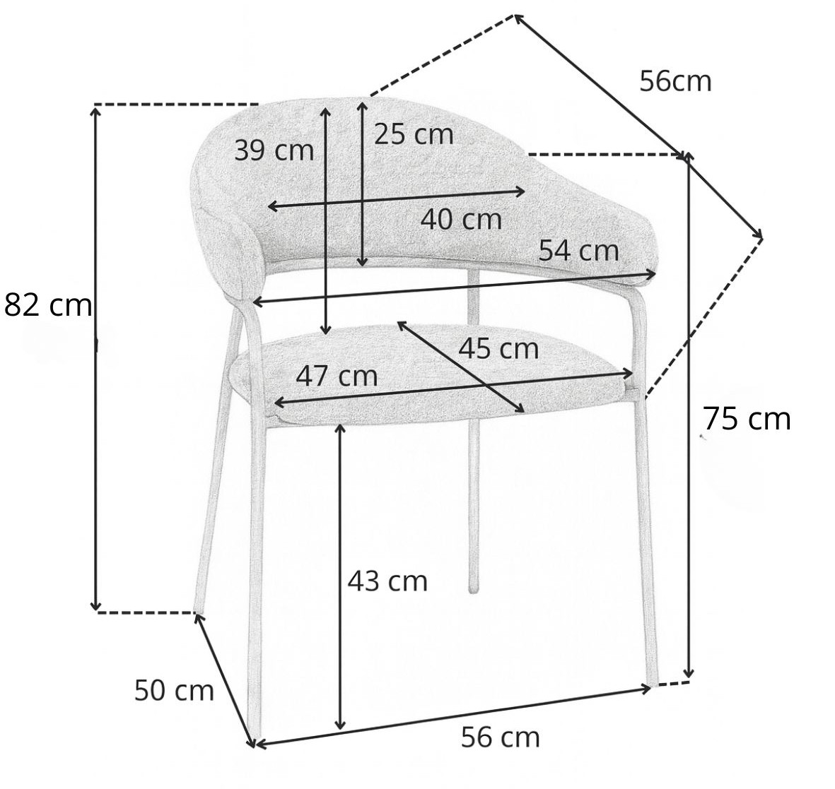 Vďaka ergonomickému tvaru, širokému sedadlu a pohodlným podrúčkam poskytuje stolička Livia vysoký komfort pri používaní – ideálna na dlhé rozhovory pri stole alebo popoludňajší oddych.