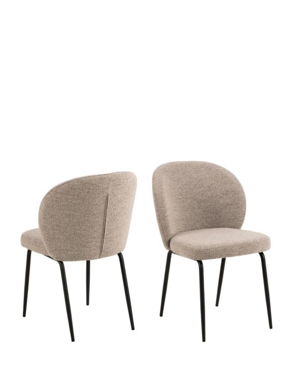 Jedálenská stolička Patricia značky Actona prináša eleganciu do každej jedálne vďaka svojmu béžovému bouclé čalúneniu s luxusnou, zatočenou textúrou.