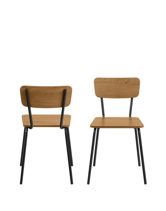Sedadlo a operadlo v odtieni divokého duba sú vyrobené z melamínu a prepojené so štíhlou, čiernou, kovovou základňou lakovanou práškovou farbou.
