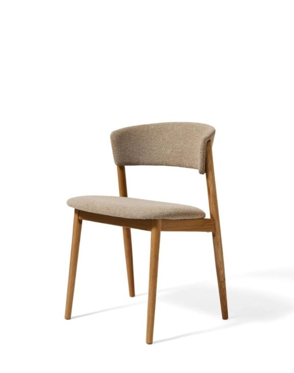 Stabilná dubová konštrukcia v prírodnom odtieni dodáva stoličke eleganciu aj hrejivý charakter.