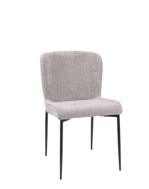 Stolička je čalúnená príjemnou látkou v sivej farbe s viditeľnými uzlíkmi.