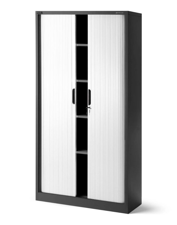 Kancelárska kovová skriňa DAMIAN s posuvnými roletovými dverami spĺňa najdôležitejšie požiadavky produktov vo svojej kategórii.