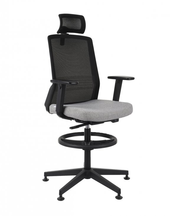 Ergonomická kancelárska stolička Coco BS HD RB od firmy Grospol s výškovo nastaviteľnou opierkou nôh a nastaviteľnou opierkou hlavy.