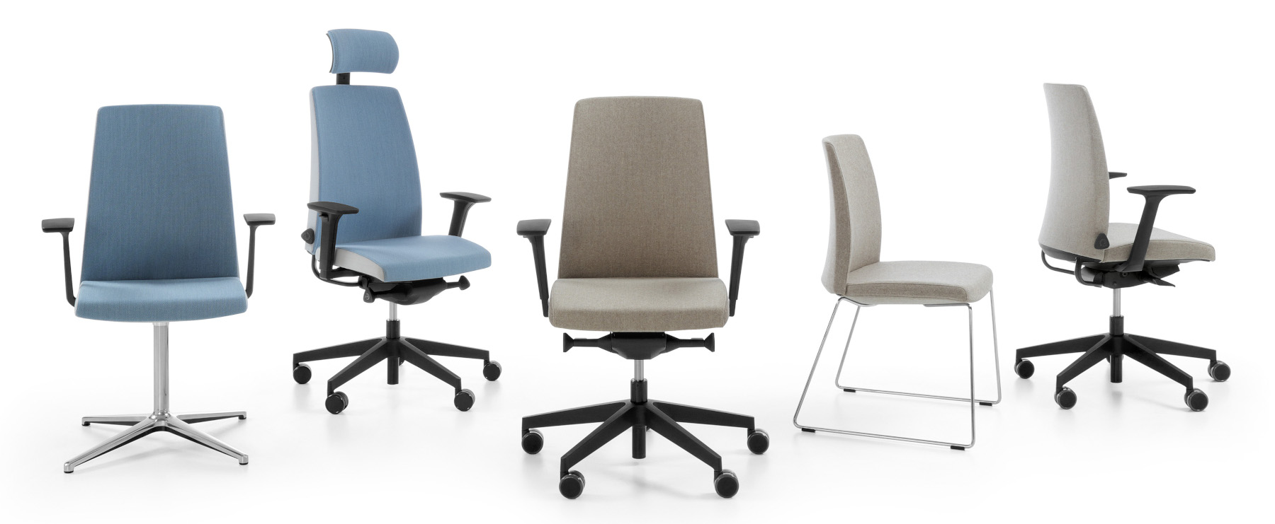 Moderná, ergonomická kancelárska stolička so synchronným mechanizmom, výrazným profilovaním a unikátnou elastickou konštrukciou vysokého operadla.