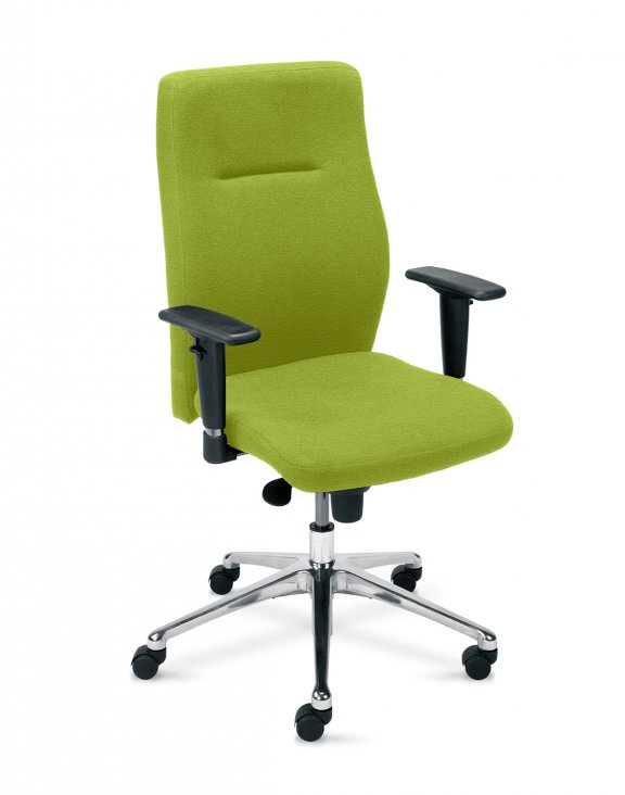 Kancelárska stolička zo série Orlando s ergonomickým tvarovaným čalúneným operadlom na oboch stranách.