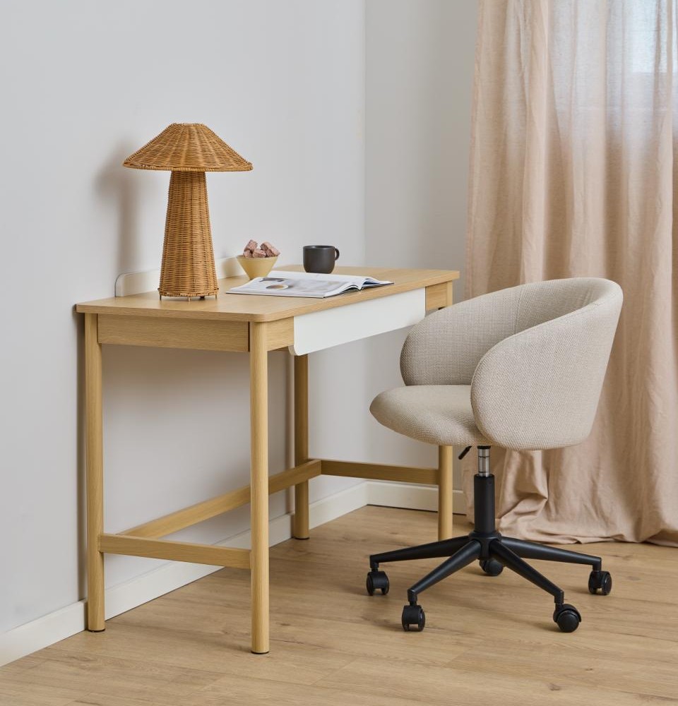 Organický tvar sedadla a operadla mu dodáva jemný, ženský charakter a béžová látka Basel 24 s výraznou štruktúrou a jemným dvojtónovým efektom zaručuje, že sa kreslo skvele hodí ako do domácej kancelárie, tak aj do elegantnej pracovne.