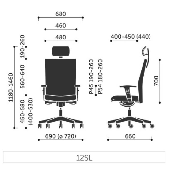 Opierky rúk vo verzii P54PU majú mäkké, tvarované polyuretánové nástavce, ktoré zvyšujú komfort.