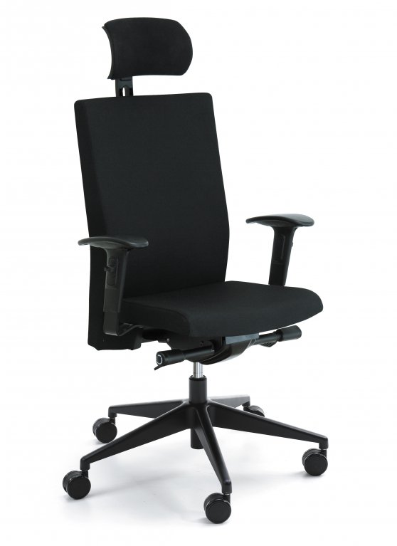 Moderná ergonomická kancelárska stolička značky PROFIM. Synchronný mechanizmus, nastaviteľné opierky rúk, opierka hlavy a nadčasový dizajn.