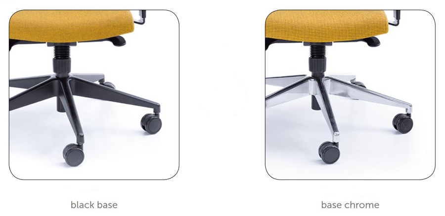 Päťramenný nylonový kríž je dostupný v čiernej farbe alebo v chrómovej verzii (leštený hliník). Obe varianty sú uvedené v Cenníku stoličky.