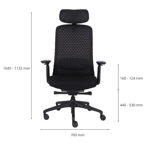 Vďaka nastaviteľnej 2D hlavovej opierke si môžete upraviť jej výšku aj uhol sklonu, čo zabezpečuje optimálnu oporu krku a hlavy aj počas dlhých hodín práce.