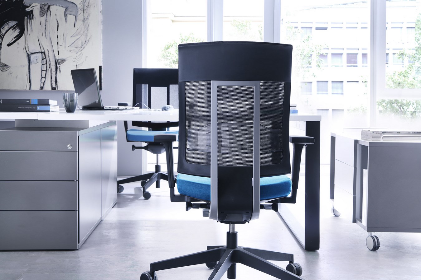 Moderná a ergonomická kancelárska stolička so sieťovaným operadlom, navrhnutá nemeckou skupinou ITO Design.