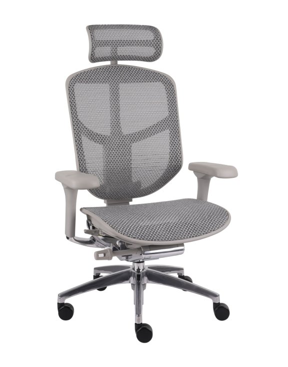 Opierka hlavy, operadlo a sedadlo sú čalúnené inovatívnou šedou sieťovinou.