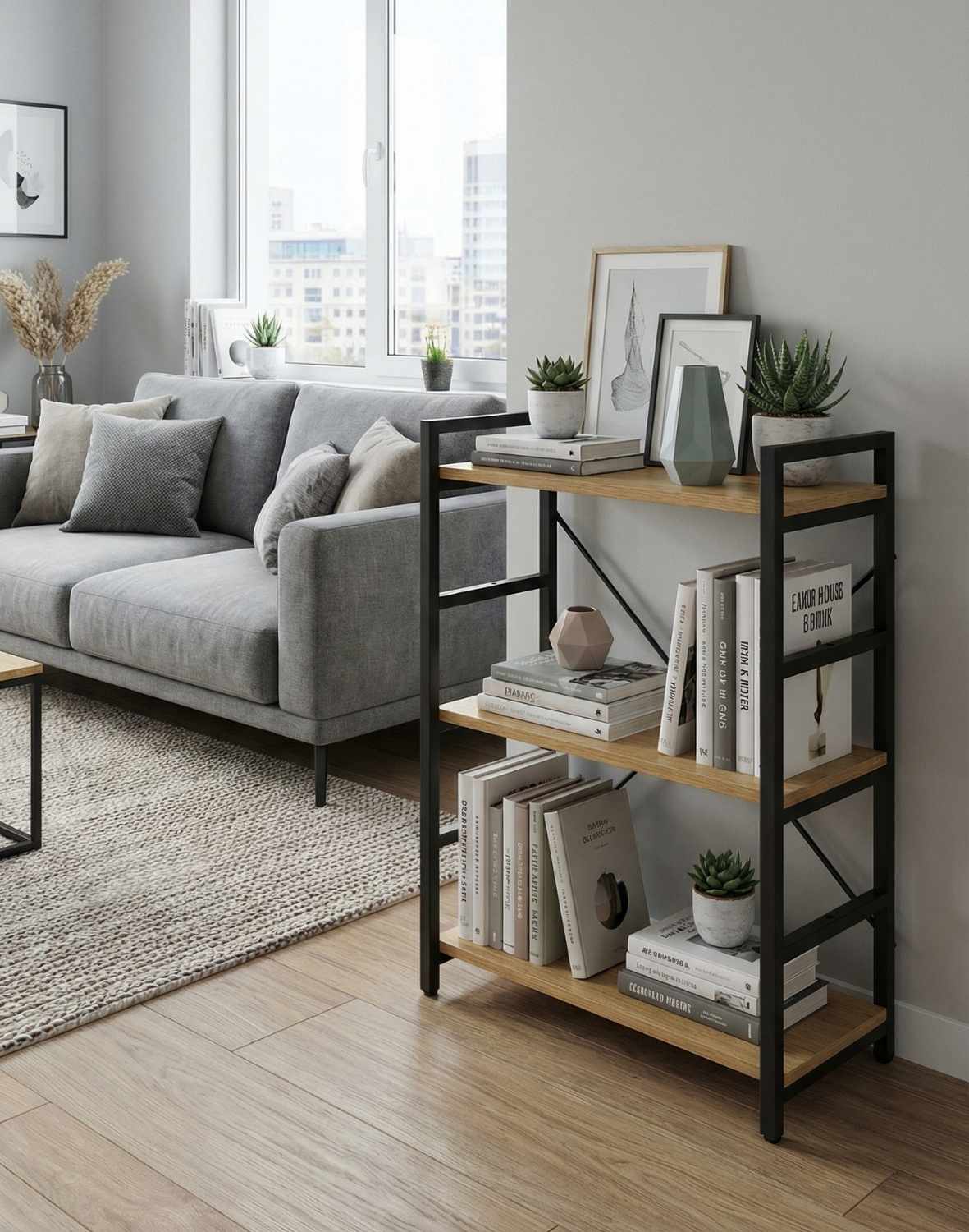 Modern S09 je nízka knižnica, inšpirovaná štýlom podkrovia.