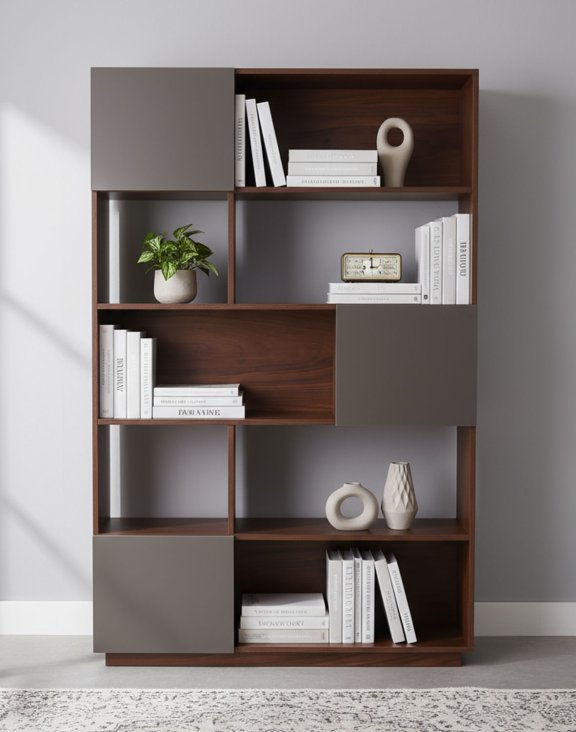 | Knižnica Nevada, tmavý orech so sivými dvierkami, 110 cm (BS02) | 170 € |
