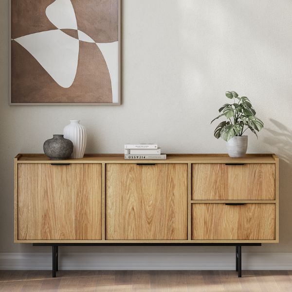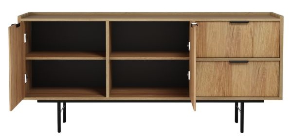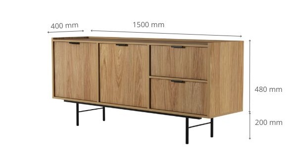 - Nadčasový dizajn – minimalistická forma, výrazná kresba dreva a kovové detaily zabezpečujú, že sa komoda hodí do moderných aj klasických interiérov.
