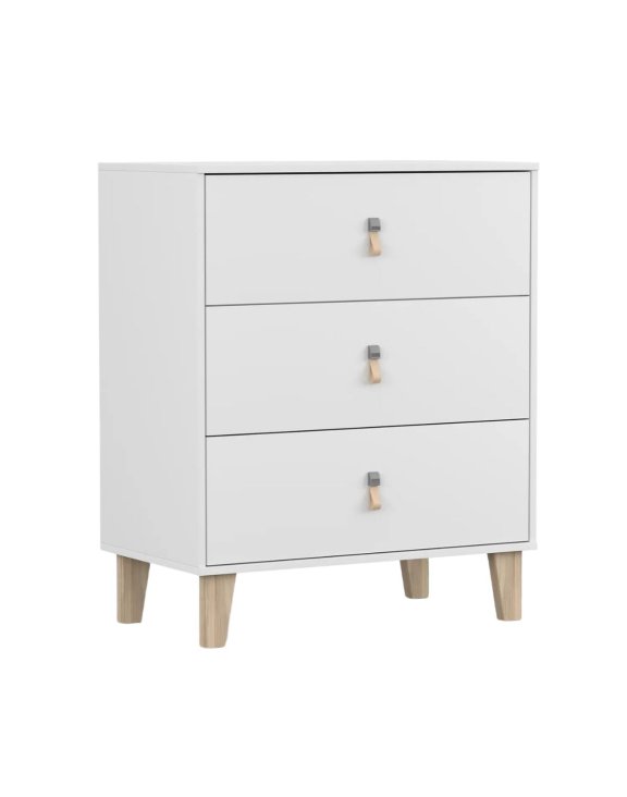 | Komoda Figo 3S – biela s drevenými nohami a koženými úchytkami | 140 € |