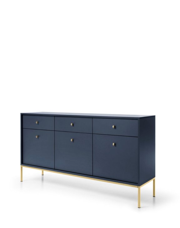 Komoda Mono navy so zásuvkami (MKSZ154) navy/gold značky Piaski je elegantný a funkčný kus nábytku, ktorý sa skvele hodí do obývacej izby.