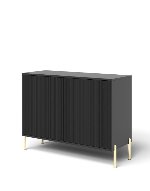 | Komoda Oslo 104 cm – čierna s drážkovaným čelom a zlatými nožičkami | 187 € |