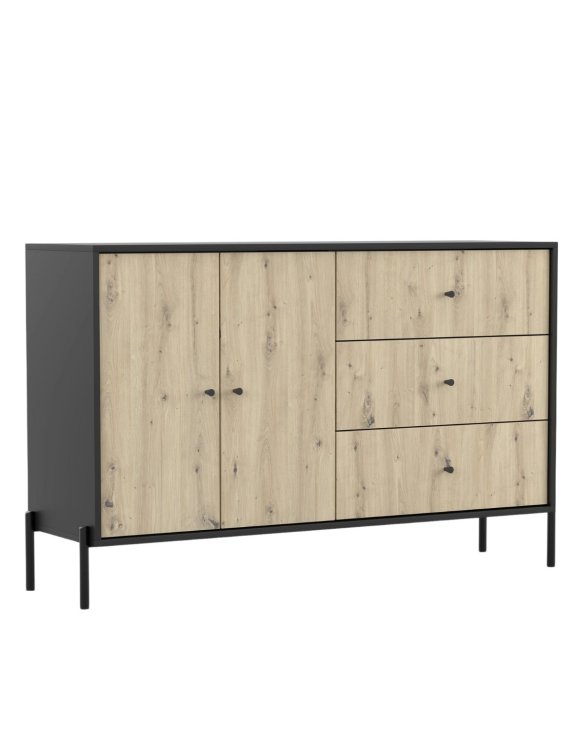 Komoda Ravi 2D3S je štýlové a funkčné riešenie, ktoré sa skvele hodí do moderných, loftových aj škandinávskych interiérov.