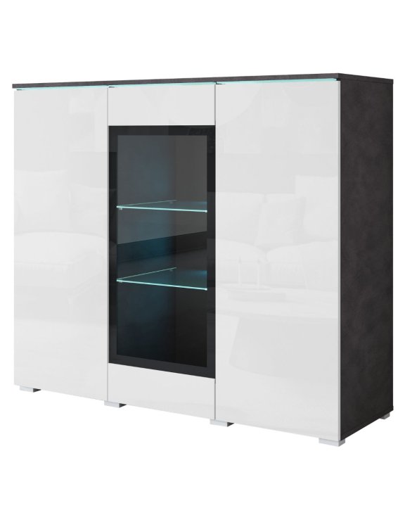 Tento kus nábytku priťahuje pozornosť počas dňa aj po zotmení – vďaka jemnému LED osvetleniu (voliteľne), ktoré efektne prezentuje obsah presklenej časti, sa stáva štýlovým centrálnym prvkom každej obývačky či jedálne.