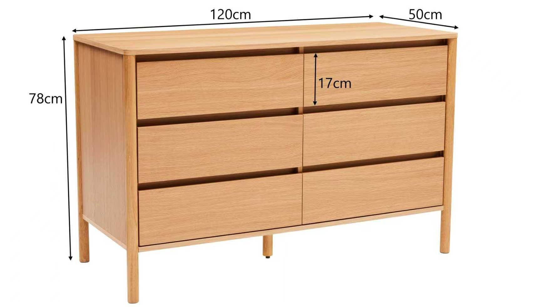 | Komoda Blair so 6 zásuvkami (CD01), prírodný dub, 120 cm | 346 € |